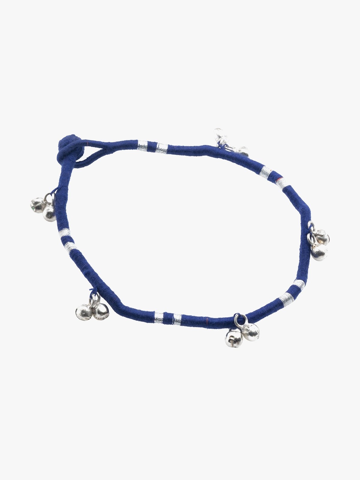 Blue Patwa Thread Anklet with Metallic Ghungroo Beads