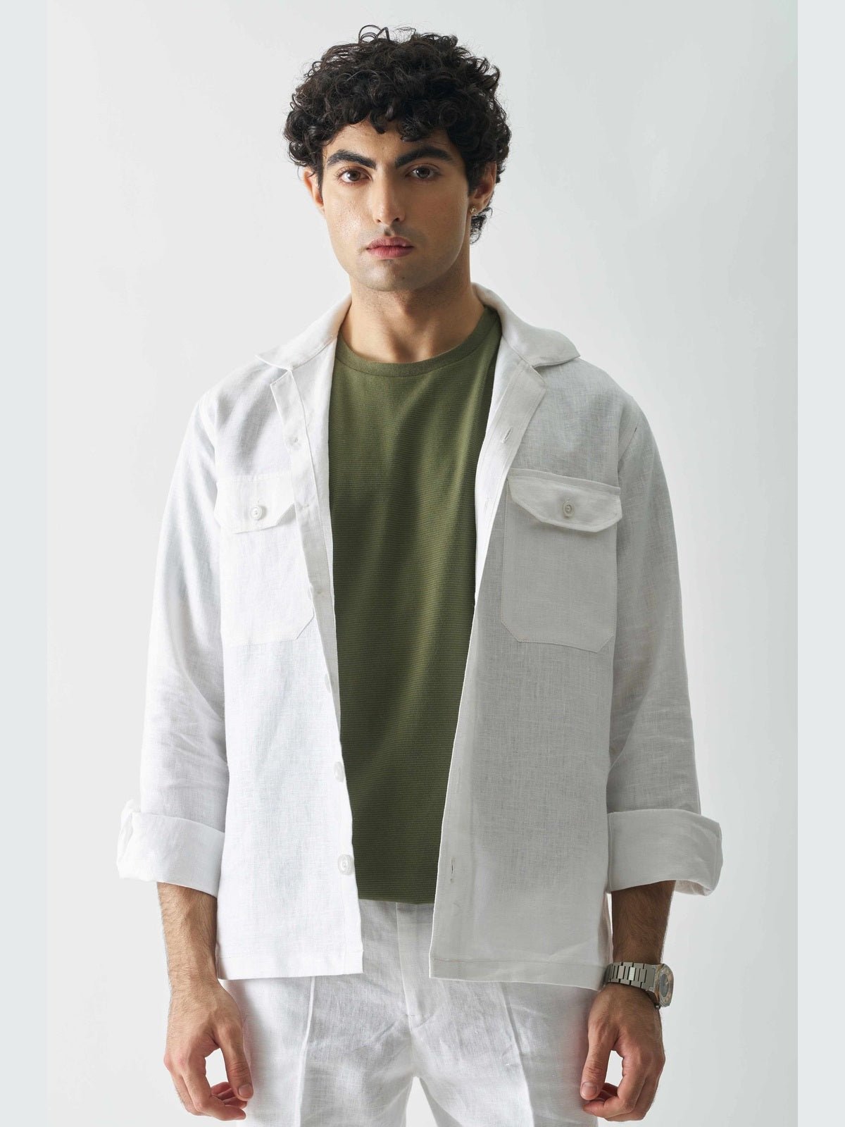 Snowflake Haven Jacket - a pristine blend of style and comfort. Crafted in white linen, this chic piece features two front cover pockets, offering a perfect balance of elegance and functionality. Embrace the winter allure with this effortlessly stylish jacket.