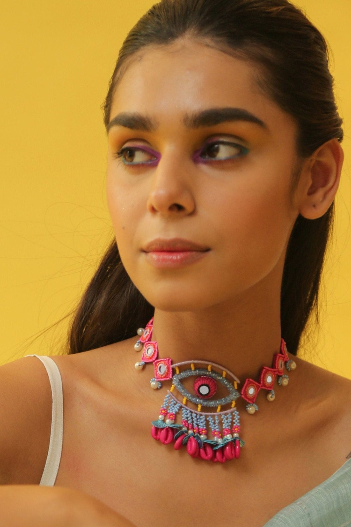 A stunning combination of evil eye and hand crafted elements with beads, thread and shells