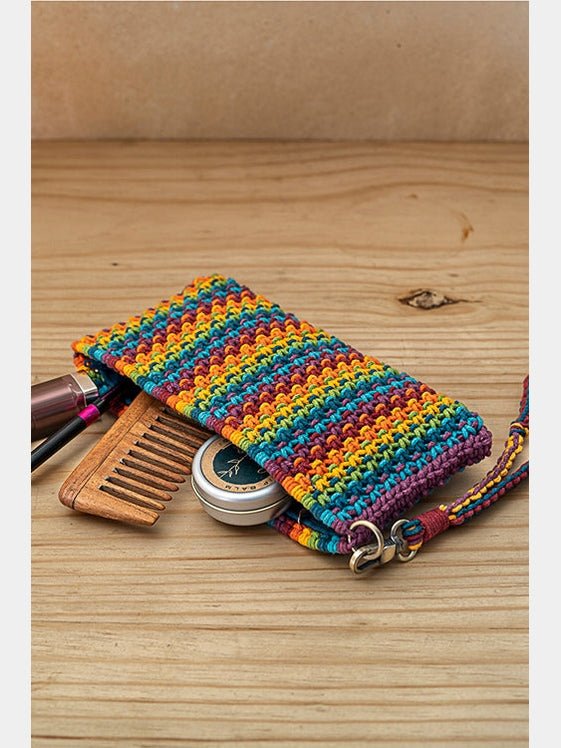A side sling bag with enough space for all your everyday knick-knacks. It is the perfect happy-coloured addition to your plain everyday ensembles. The pouch is handcrafted using our distinctive macram‚ technique and is available in two variations to bring more colour into the world. The gardenia bag will upgrade all of your outfits; wear it as a clutch or with the sling.