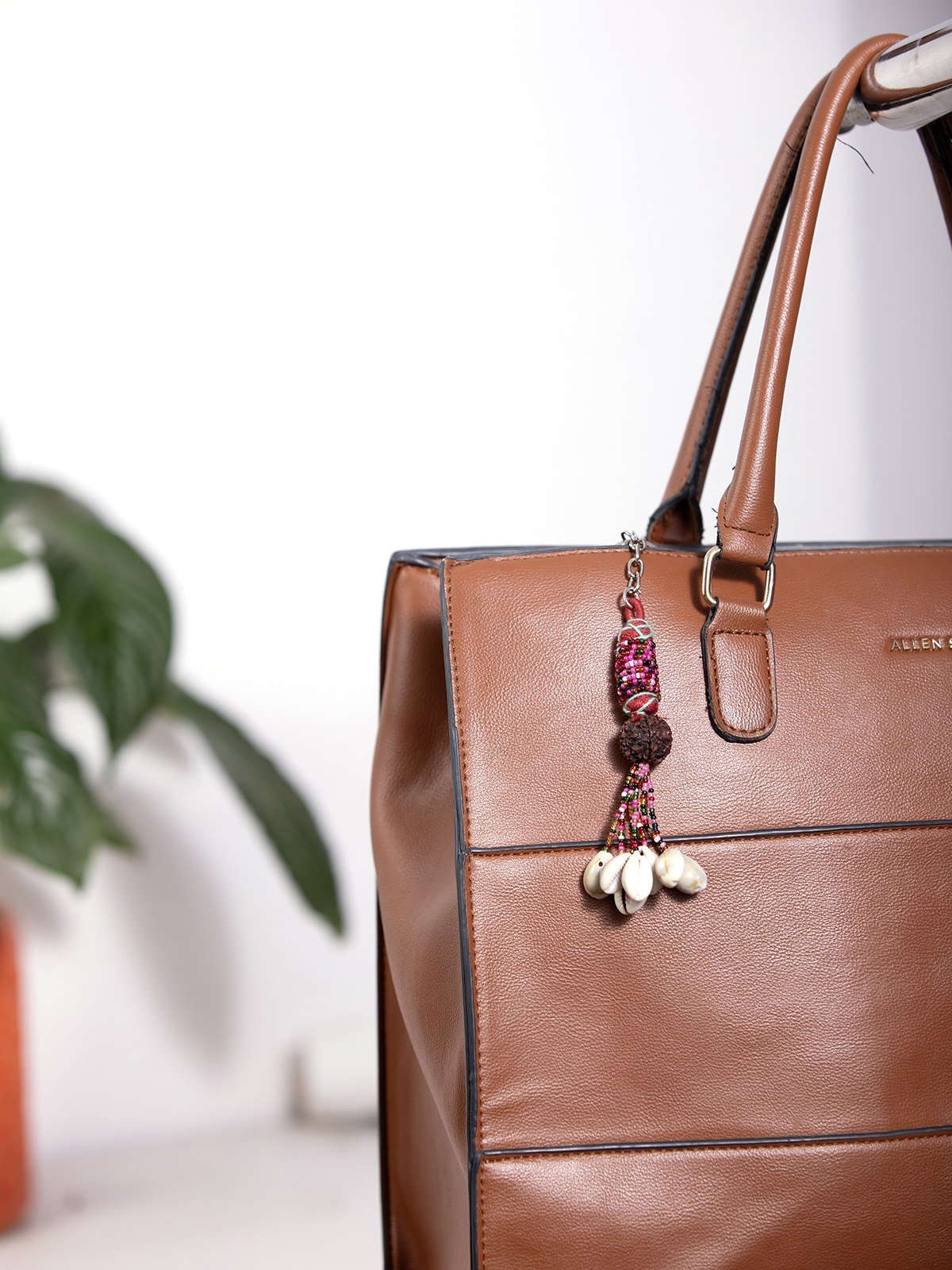 A spiritual yet stylish accessory, this handcrafted Patwa keychain features vibrant beadwork, natural Rudraksha seed, and cowrie shell accents. Combining tradition and functionality, this unique keychain is perfect for adding an artisanal, ethnic touch to your keys, bags, or pouches.