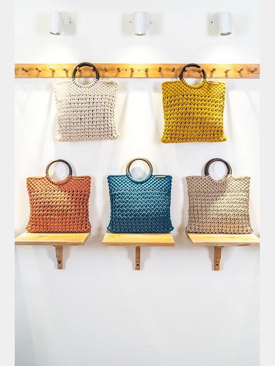 The Sweven bag is our tiniest warrior in the bag range and holds the most precious things, phones and wallets. It is a wonderful hassle-free sling that can be styled with your coolest pair of jeans.Made by hand in our macram details and seven gorgeous colours, this bag also has a press-button closure to keep your essentials safe.