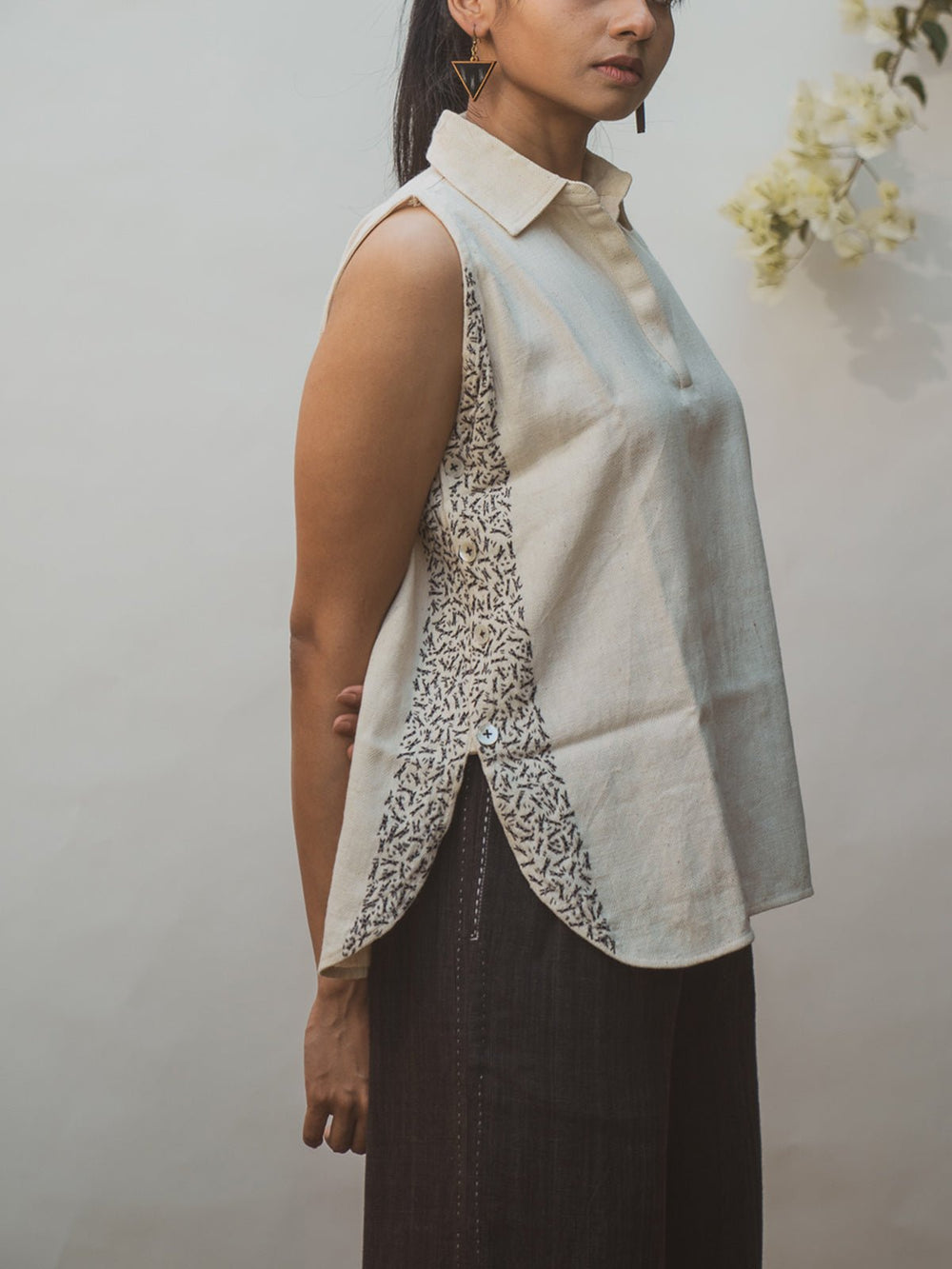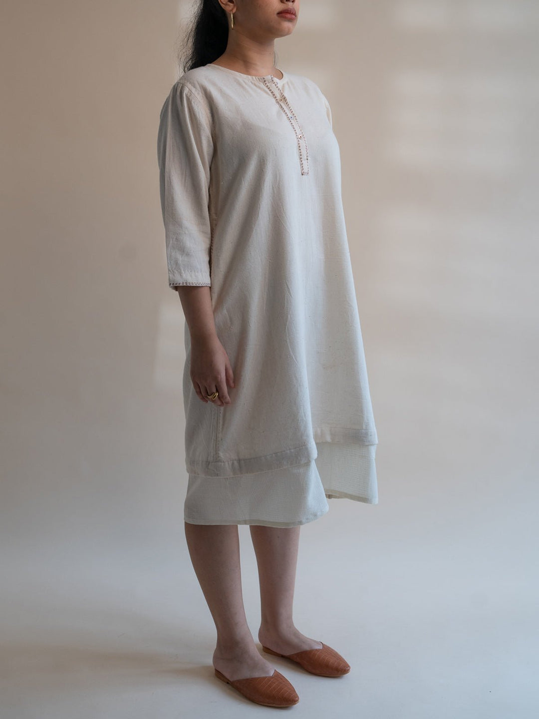 • Bosonto Hand Embroidered Cotton Tunic – Natural White