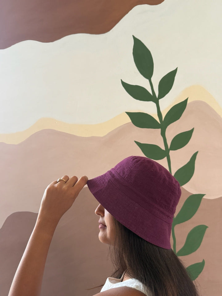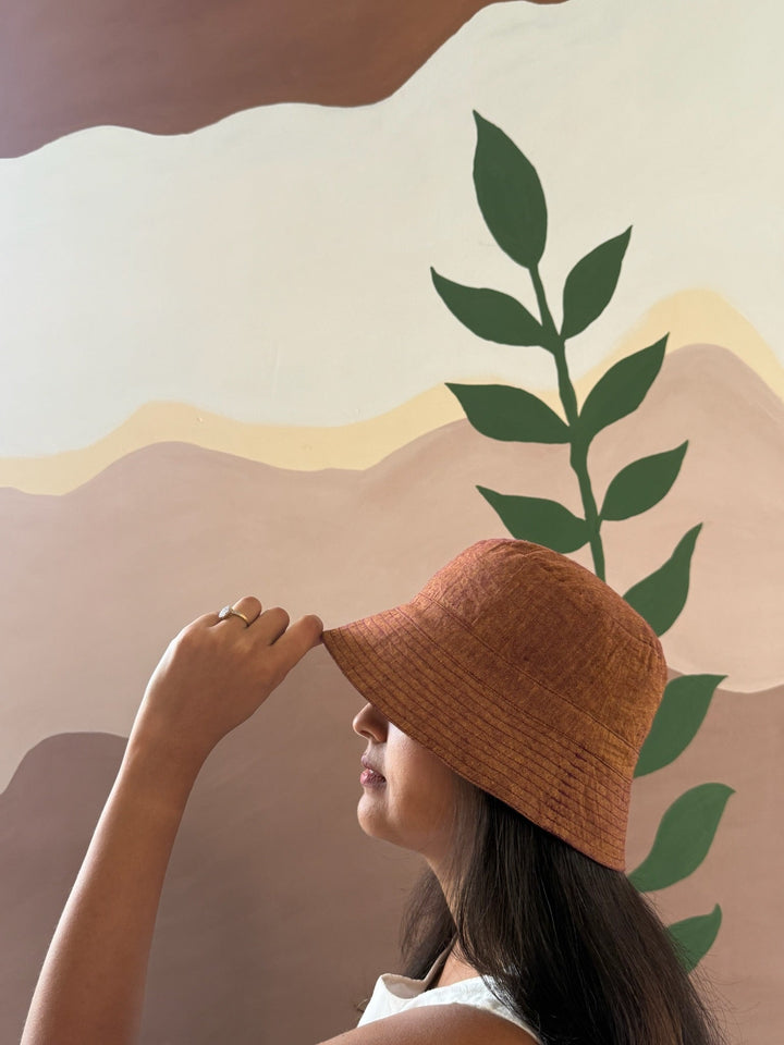 Two moods, one hat. This reversible bucket hat brings together deep wine and warm rust wine tones for a rich, autumn-inspired palette. Thoughtfully crafted from upcycled fabric remnants left over from garment production, it's a sustainable choice that gives new life to beautiful textiles. Made in Leecoceel – a soft, breathable, and eco-conscious fabric – this hat is all about comfort with character.